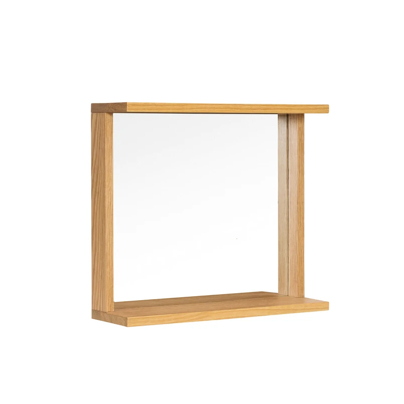 Kompakt kialakítású, de a részletek terén nagyszerű. A Base tükör természetes tölgyfa keretével lágy melegséget kölcsönöz a helyiségnek, és egyszerre tűnik letisztultnak és elegánsnak. A kis polc helyet kínál a mindennapi tárgyaknak, mint például a kulcsoknak, ékszereknek vagy parfümöknek, ami ideálissá teszi fürdőszobákba, szűk folyosókra vagy a hálószoba csendes sarkaiba. Ez a gondosan készített tükör többet tud, mint csak a tükörképet visszatükrözni; tisztaságot és nyugalmat hoz a mindennapi életbe, miközben praktikus hasznot is nyújt.