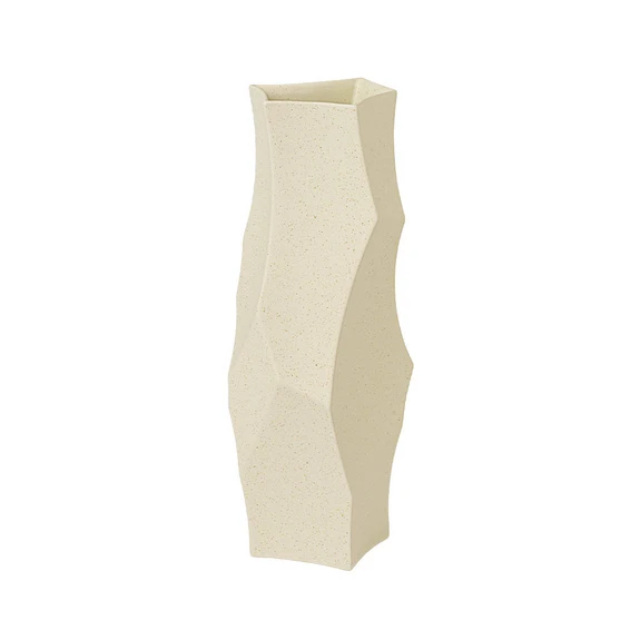 Ez a bézs színű váza 15,0 cm széles, 37,0 cm magas és 14,0 cm mély, így lenyűgöző központi darabja lesz lakberendezésének. A kőedény szilárd és robusztus tapintása az elegáns kivitelezéssel kombinálva ideális önálló műalkotásként és kedvenc virágai tárolására is. Akár a nappaliban, akár az étkezőasztalon vagy az előszobában helyezi el, természetes eleganciát kölcsönöz majd.