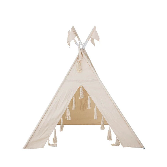 A sátor sátor tartós szövetből és fémből készült, ami biztosítja a masszív konstrukciót, amely sok-sok órányi játékot is kibír. A bézs szín tökéletesen illeszkedik minden szobába, és nyugodt, barátságos légkört teremt. Könnyen összeszerelhető a fa rudakkal, amelyeket egy madzag tart össze, így könnyen felállítható és elpakolható, ha nem használod.