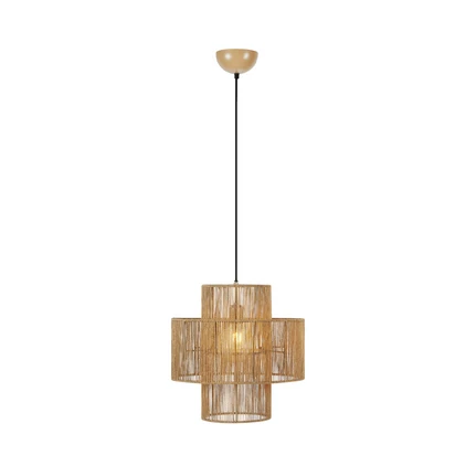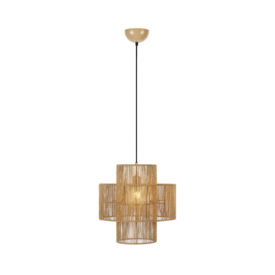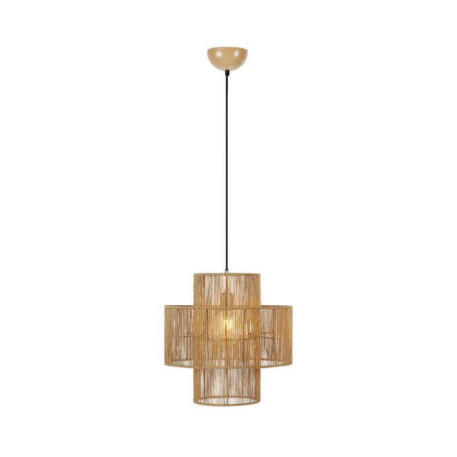 A Soga 1 függőlámpa Natural egy rusztikus világítási kollekció, amelynek következetes és koherens kialakítása gyönyörű és dekoratív világítást teremt, miközben vonzó kialakításával stílusos lendületet ad a belső térnek. A sorozat matt fekete és természetes színben kapható asztali és függőlámpás lámpákból áll, és gyönyörű, kettős lámpaernyő kialakítás jellemzi, amely gyönyörűen harmonikus egésszé ötvözi a hengeres formákat. A lámpaernyők jutából készülnek, és kézzel vannak megmunkálva, ami tovább hangsúlyozza a lámpa rusztikus jellegét. A jutafonal bonyolult mintázatot alkot, amely elég laza ahhoz, hogy a belsejében lévő fényforrásra rálátást engedjen, ugyanakkor elég sűrű ahhoz, hogy a fényt megvédje a vakító fénytől. A lámpa nagyméretű szabványos foglalattal van ellátva, amely számos különböző típusú izzóhoz illeszkedik. Ezért érdemes a lámpát egy dekoratív izzómodellel, például gömbizzóval felszerelni. Válasszon világos fényforrást, hogy a lámpa körüli juta szálakból szép fényhatást érjen el.